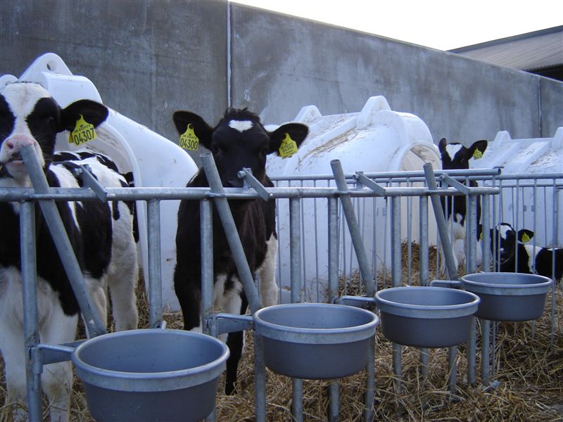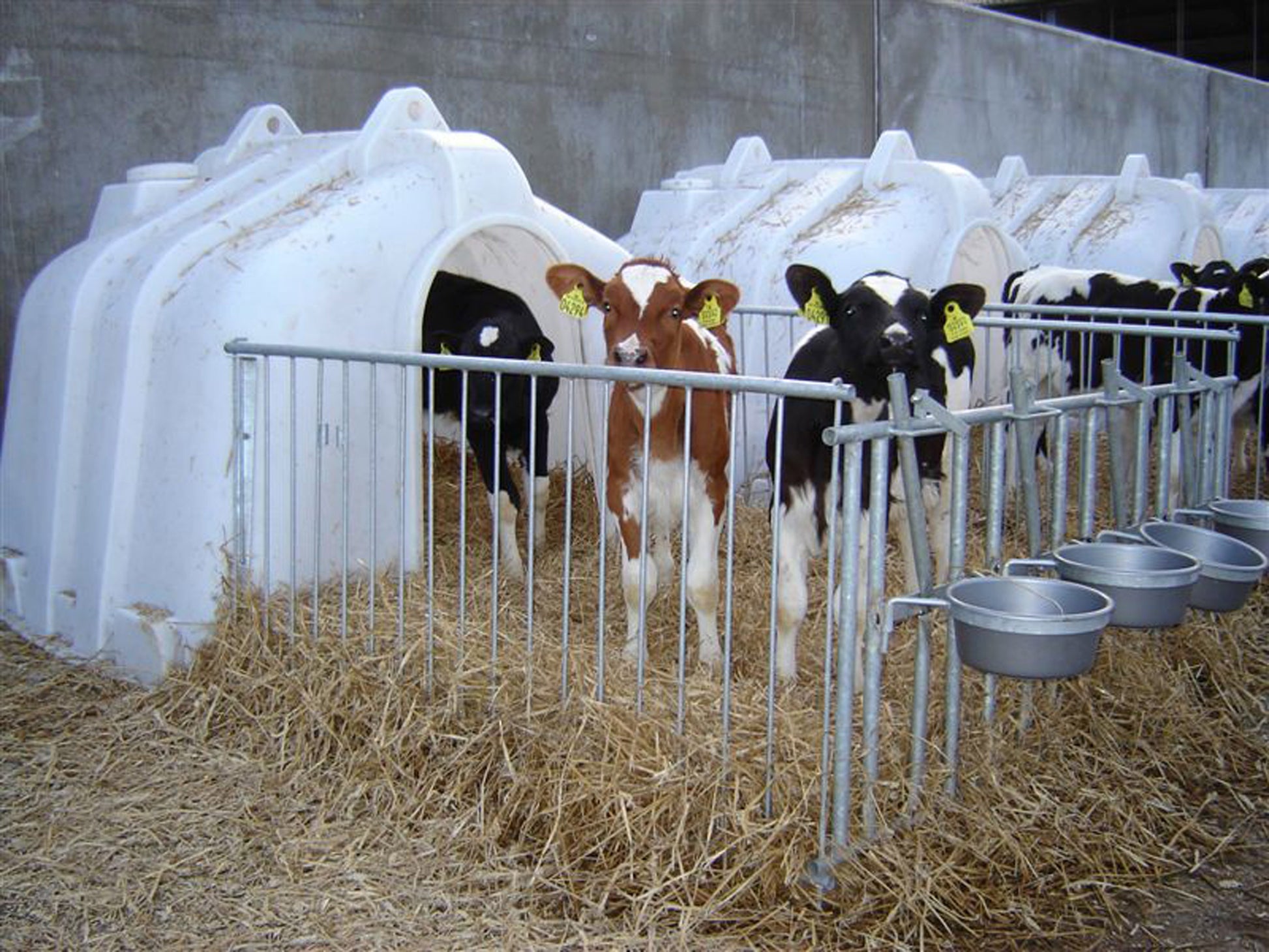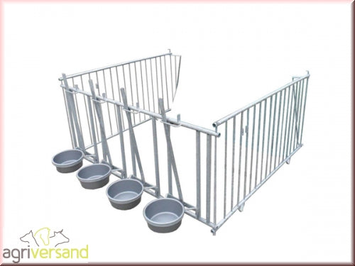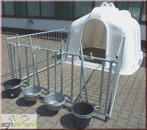 Dank der integrierten 4 Fressplätze als Fanggitter eignet sich die Einheit ideal zur Fixierung der Kälber für einfache Fütterungs- oder Behandlungsmaßnahmen.