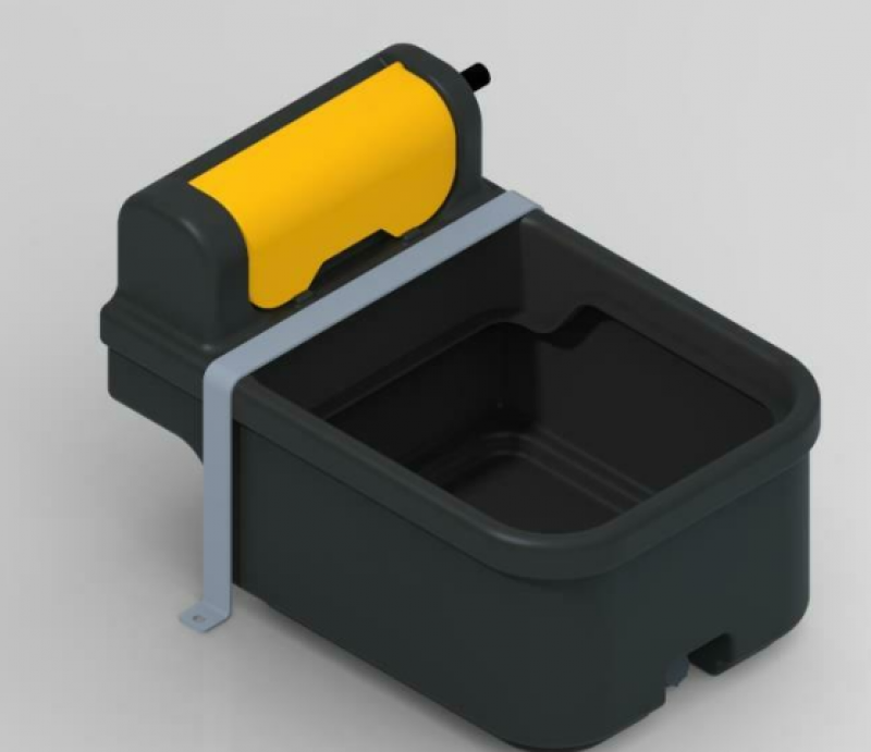 Der Trog DT15 könnte im leeren Zustand umkippen, um dies zu vermeiden wird er, wie auf dem Bild, mit einer Halterung an der Rückseite montiert.