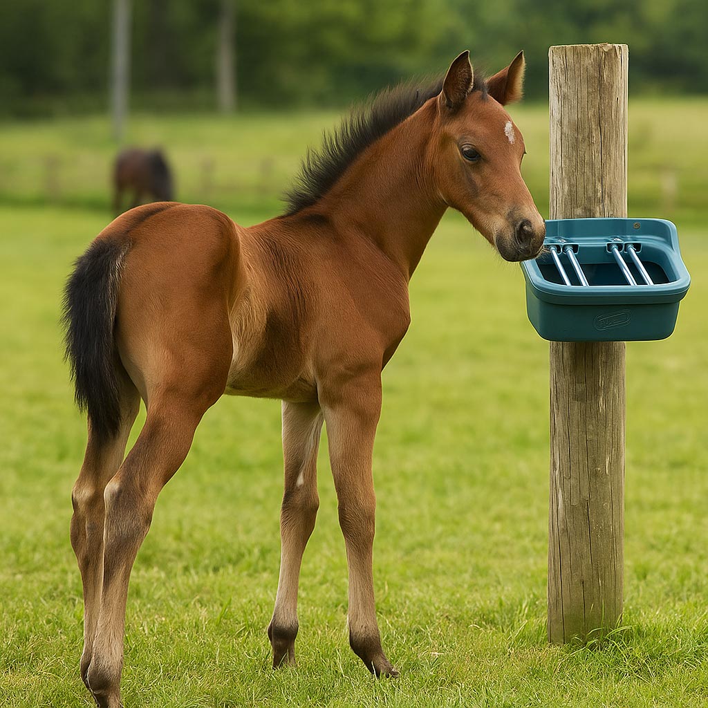 - Vielseitig einsetzbar auf der Weide und im Stall – ideal für die Fütterung von Fohlen und anderen jungen Tieren