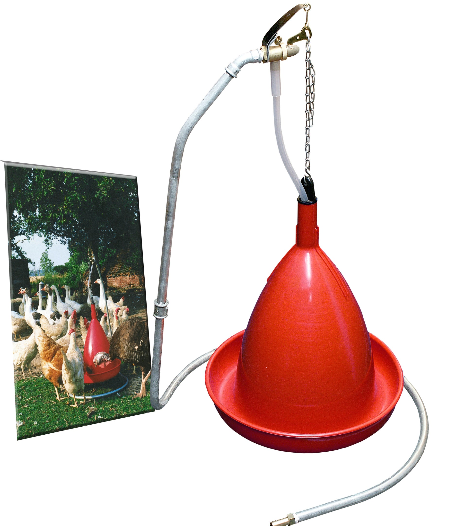 Automatische Geflügelhängetränke mit verzinktem Ständer – Direktanschluss an Wasserleitung | PVA-Ständertränke Art. Nr. 6