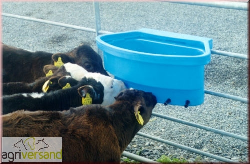 JFC Tränkeeimer ist mit 6 Starter Nuckeln / Gummisaugern versehen die so geformt sind, dass der natürliche Saugreflex des Kalbes verstärkt wird. Diese Tränkeeimer sind vor allem dazu entwickelt worden, um mehrere Kälber gleichzeitig trinken zu lassen.