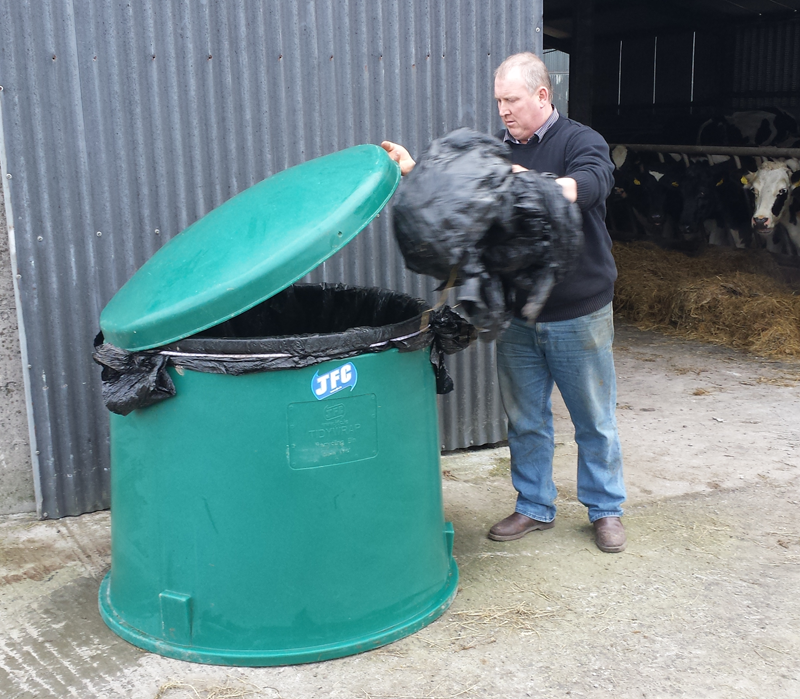 Verwenden Sie den Tidy Wrap Wickelfolienbehälter, um gebrauchte Folien effizient zu lagern und die Entsorgungskosten zu senken.